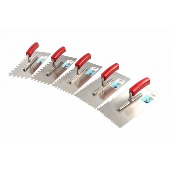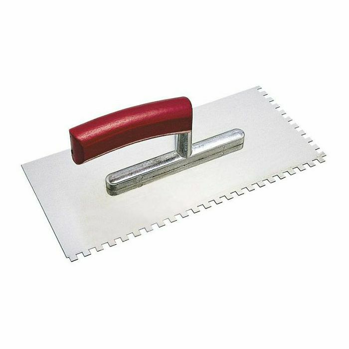 Gleter ne hrđajući kaufmann. Veličina: 280 mm x 130 mm Debljina: 0,75 mm Formati zuba: 3 x 3 mm, 4 x 4 mm, 6 x 6 mm, 8 mm x 8 mm, 10 x 10 mm