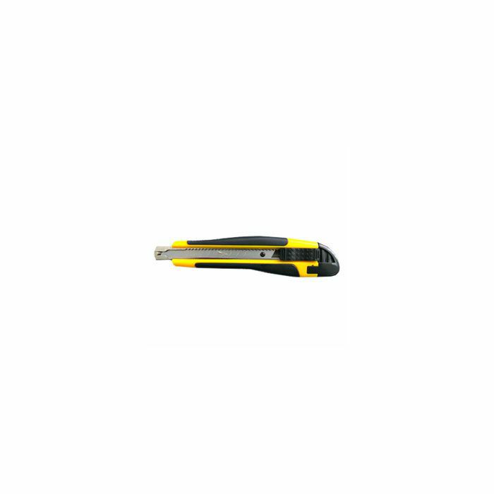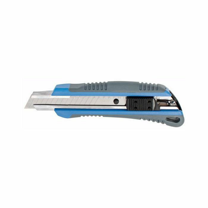 Univerzalni nož, 18 mm • S ergonomskom dvokomponentnom plastičnom ručkom • Širina oštrice 18 mm • S automatskim spremnikom spremnika, uključujući 4 trake oštrice za rukovanje Rukovanje automatskom promjenom oštrice: 1. Gurnite lako korištenu o