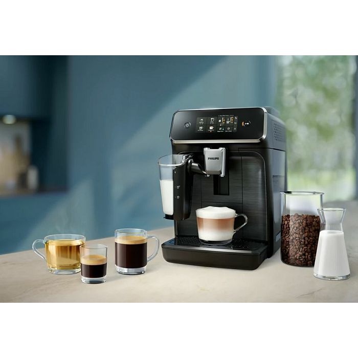 PHILIPS aparat za kavu EP2331/10 nudi prilagodljive postavke jačine arome, dužine kave i temperature te 12 postavki mlina za kavu, osiguravajući vam potpunu kontrolu nad vašim napicima. Omogućuje pripremu različitih napitaka