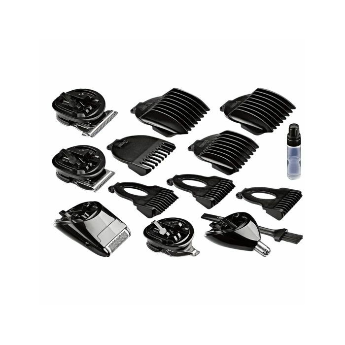 Žična i bežična upotreba omogućuje vam fleksibilnost prilikom oblikovanja vaše frizure. Set sadrži 5 zamjenjivih glava, uključujući široku, normalnu i preciznu glavu za rezanje, kao i trimer za nos i britvu. Također, dolazi s