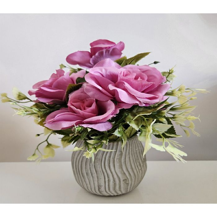 ARANŽMAN MIX CVIJEĆA U CEMENTNOJ POSUDI ljubičasto