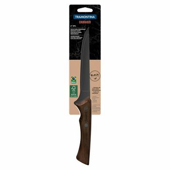 Za pripremu i rezanje mesa za vaš roštilj, Tramontina Churrasco Black nož za otkoštavanje s pocrnjelom oštricom od nehrđajućeg čelika i drvenom drškom od 6 inča neophodan je u vašem setu noževa.