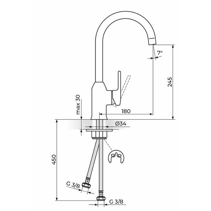 Baterija usadna 2 cijevi jednoručna za kuhinju 203 flex bijela BLITZ