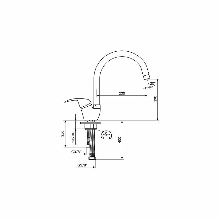 Baterija usadna 2 cijevi jednoručna za kuhinju 203 flex bijela BLITZ