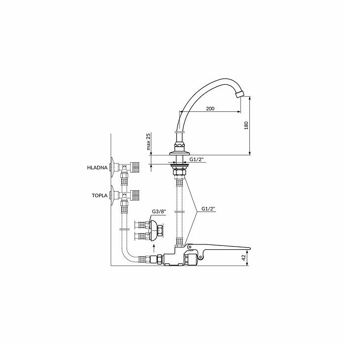 STOJEĆI VENTIL ZA TOPLO/HLADNU VODU - IZLIV J 200 MM