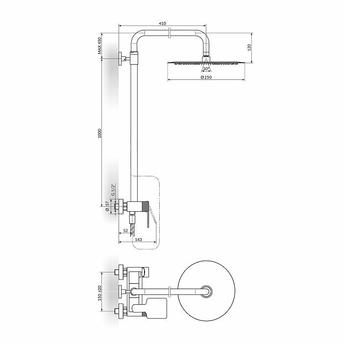protok ručnog tuširanja pri 3 bara: 17 l / min