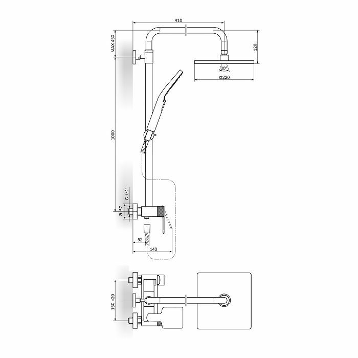 S3 MJEŠALICA ZA TUŠ KADU PODŽBUKNA TERMOSTAT, ZIDNI I RUČNI TUŠ 331601