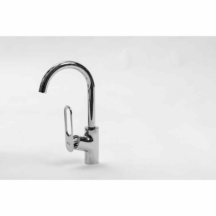 Voxort Gala moderna jednoručna slavina za umivaonik visokotlačnog tipa. Dimenzije proizvoda su visoke 15,5 cm i duboke 16 cm. Dolazi u kompletu s priborom za montažu i dvije priključne cijevi duljine 3/8 "x 35 cm, bez sifona. Jednoručna miješalica Vo