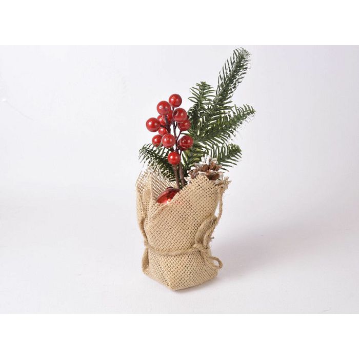 BOŽIĆNA DEKORACIJA BERRY S KUGLICOM 20 CM, JUTA