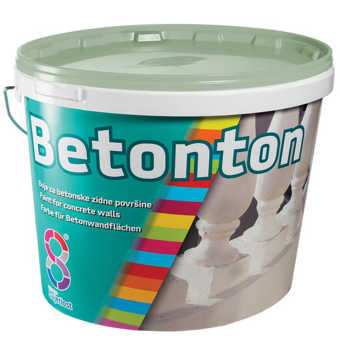 BETONTON boja za betonske zidne površineizrađena je na bazi specijalnih akrilnih polimernih veziva. Postojana je na svim vrstama vapnenih i cementnih podloga, otporna na atmosferilije i habanje.