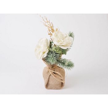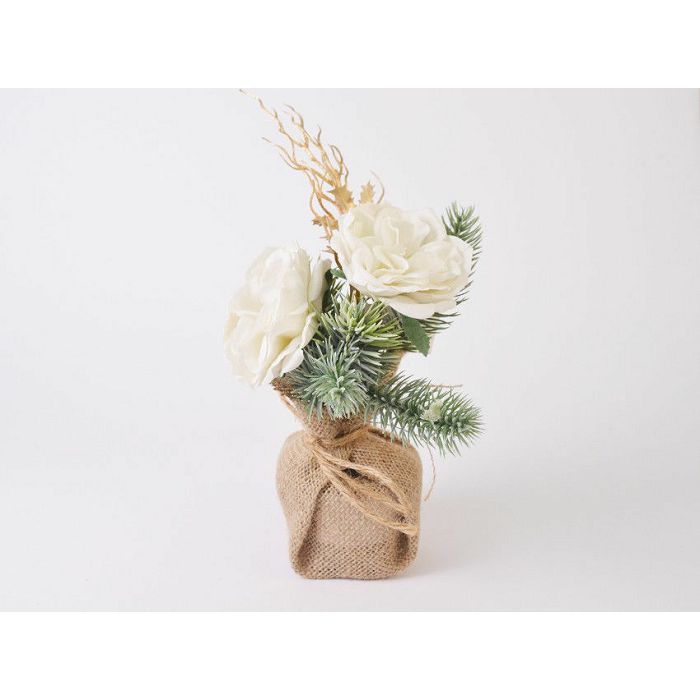 BOŽIĆNA POSUDA U JUTI S RUŽOM, BOROVINOM 29CM BIJELA