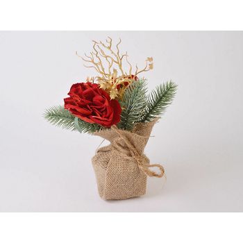BOŽIĆNA POSUDA U JUTI S RUŽOM, BOROVINOM 29CM CRVENA