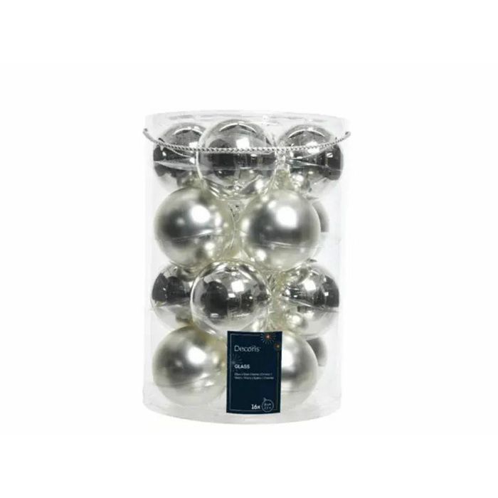 BOŽIĆNE KUGLICE STAKLO 8CM. S/16 srebrne