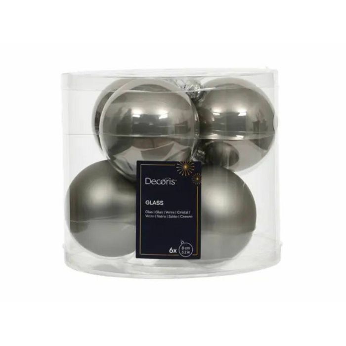 BOŽIĆNE KUGLICE STAKLO 8CM. S/6 siva