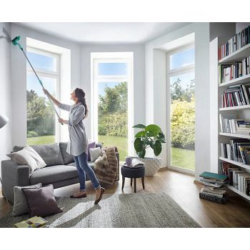 Njegov poseban trokutasti oblik uklanja prljavštinu, paučinu i prašinu iz svakog kuta. Čak i iza karniša, Dusty zid i metla za prašinu mogu biti olovni, zahvaljujući poboljšanom dizajnu. Kompaktna ručna četka opremljena je Leifhe
