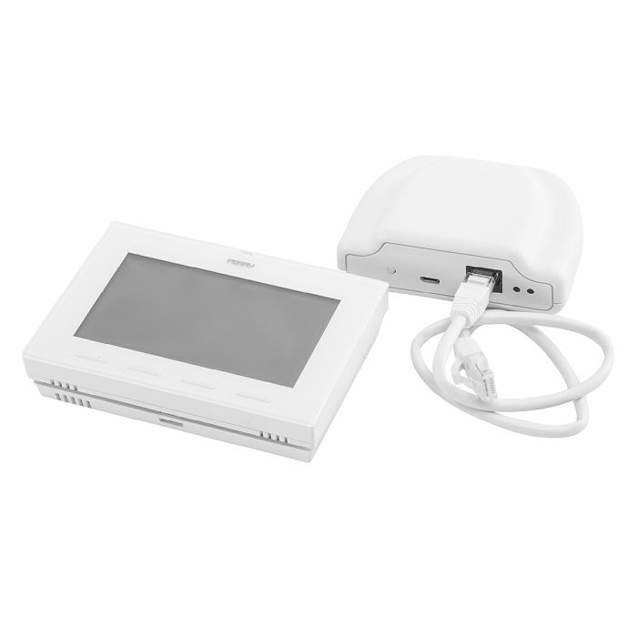 Terma WIFI tjedni termostat. U kompletu dolazi termostat koji ima baterijsko napajanje, ali se žičano povezuje sa kotlom ili cirkulacijskom pumpom (beznaponski kontakt) te smartbox koji je potrebno povezati