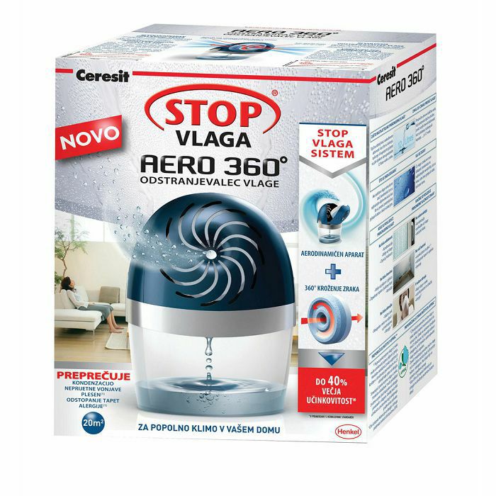 Uređaj CERESIT Stop Moisture AERO - Odvlaživač zraka dizajniran za manje prostore. Izuzetno je jednostavan za upotrebu, a uređaj je idealan za kupaonice, kuhinje, spavaće sobe i sve prostorije s lošom cirkulacijom zraka.