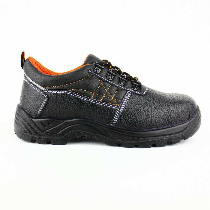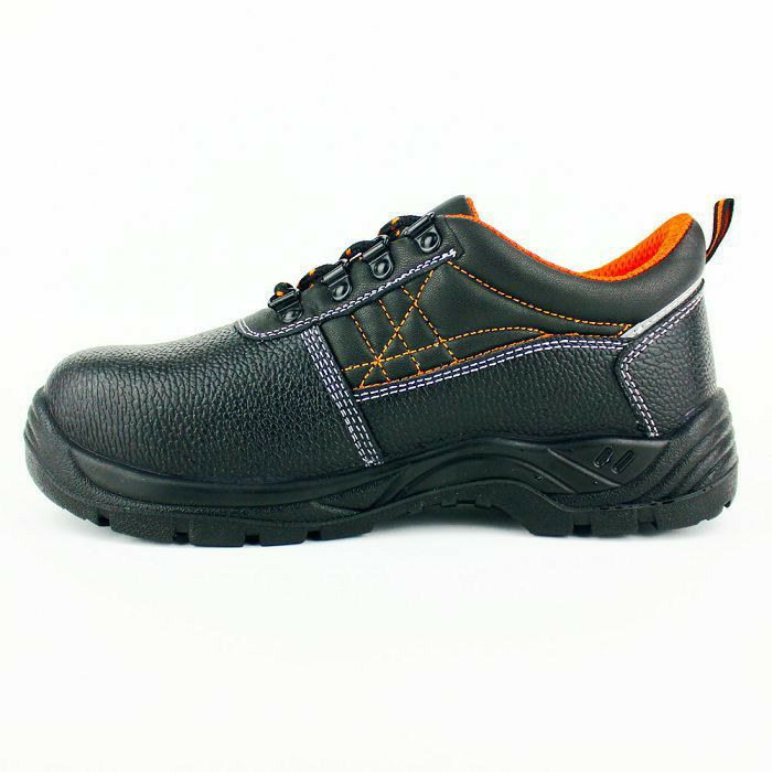 Opis: Niske radne cipele u crnoj koži sa postavljenim jezikom za bolju udobnost i zaštitu