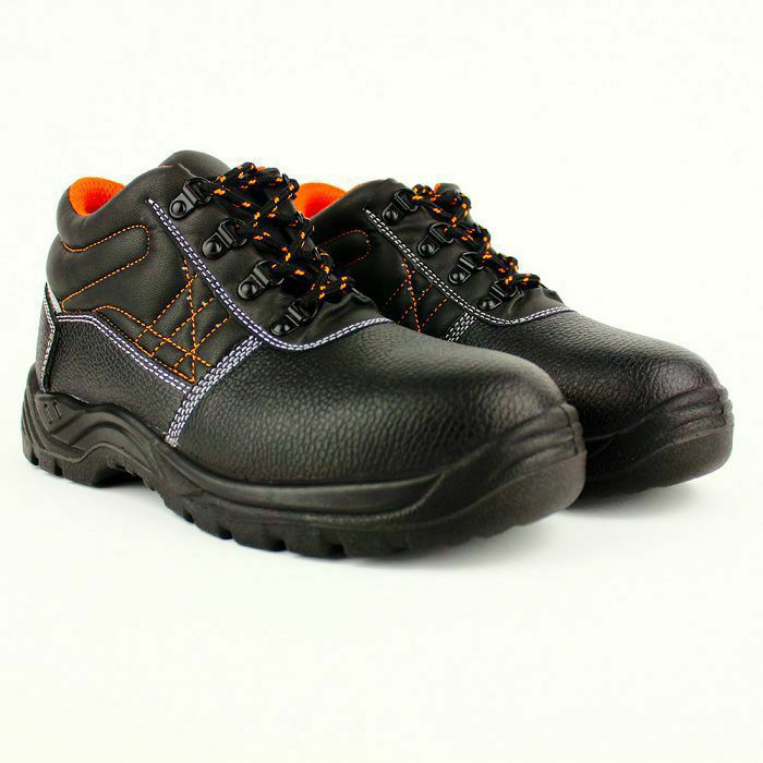 Visoke radne cipele u crnoj koži sa postavljenim jezikom za bolju udobnost i zaštitu