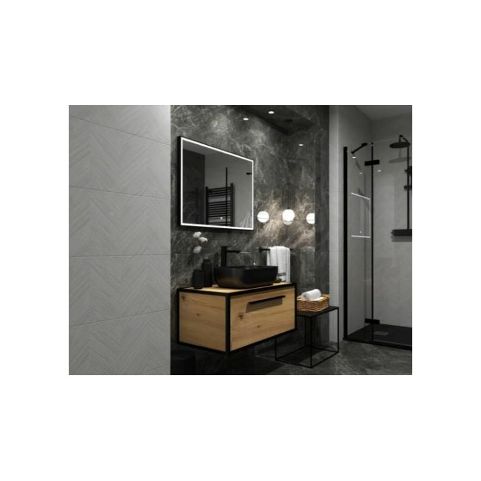 Modernim dizajnom, reljefnom površinom, pravokutnim oblikom i zanimljivim uzorkom mramora izvrsno se uklapa u suvremeno uređene kupaonice u koje unosi dozu luksuza i elegancije.