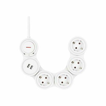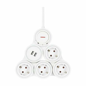 DELTACO Fleksibilna razvodna traka s 4 utičnice, 1,4 m, 16A 3500W, 2x USB-A, bijela, kabel 1,4 m, bijeli