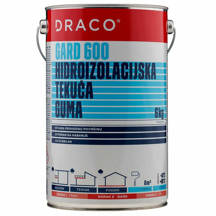 DRACO GARD 500 je jednokomponentni tekući poliuretan koji se umrežava u dodiru s vlagom iz zraka. Stvara visoko elastičnu membranu s izvrsnim prianjanjem na različite podloge. Sadrži mali postotak otapala i može se njime dodatno razrijediti korištenj