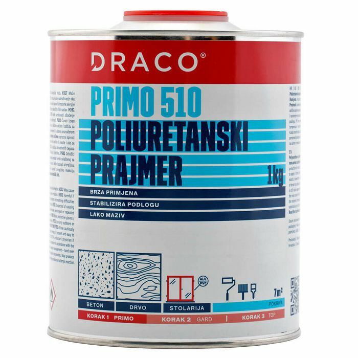 DRACO PRIMO 510 je jednokomponentni prajmer niske viskoznosti koji umrežava s vlagom iz zraka. Proizveden je kako bi poboljšao vezu poliuretana (suhe tvari) s poroznim podlogama. DRACO PRIMO 510 je izvrstan izbor za zaštitu metala od korozije.