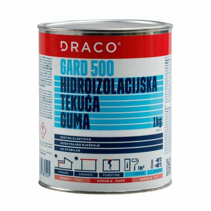 DRACO GARD 500 je jednokomponentni tekući poliuretan koji se umrežava u dodi ru s vlagom iz zraka. Stvara visoko elastičnu membranu s izvrsnim prianjanjem na različite podloge. Sadrži mali postotak otapala i može se njime dodatno razrijediti korišten
