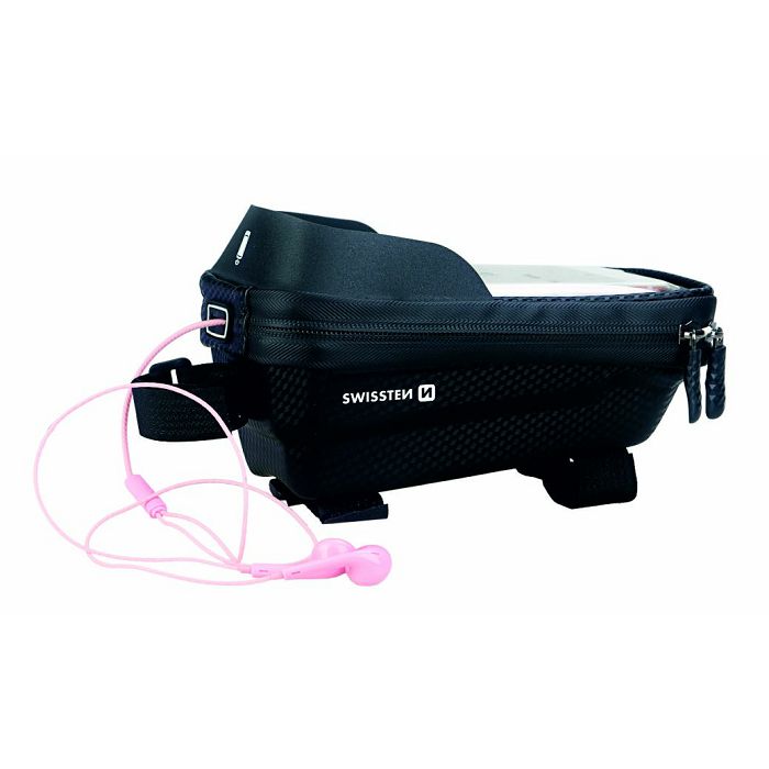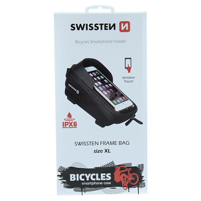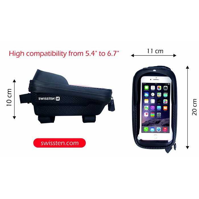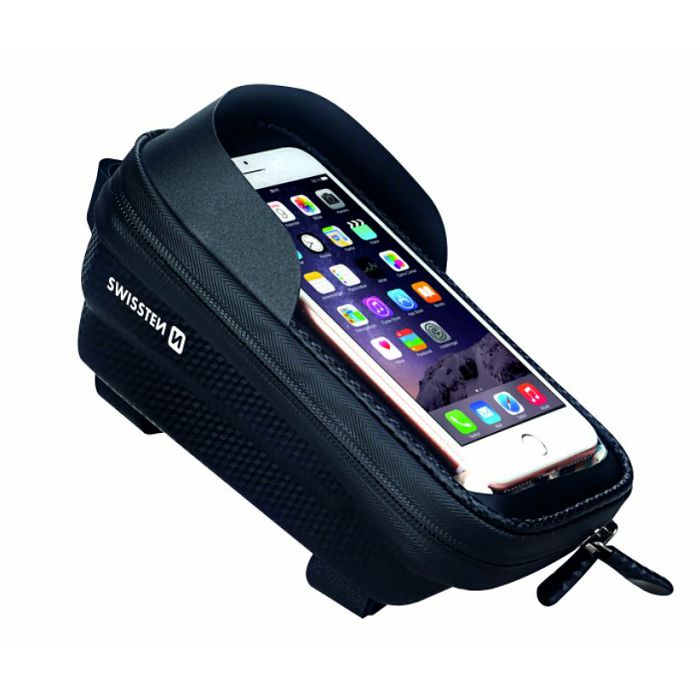 Vodootporna torbica za bicikl za vaš pametni telefon. Opremljen je pokrovnim vizirom i priključkom za slušalice. Pakirano u SWISSTEN blister.