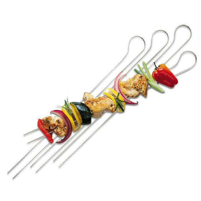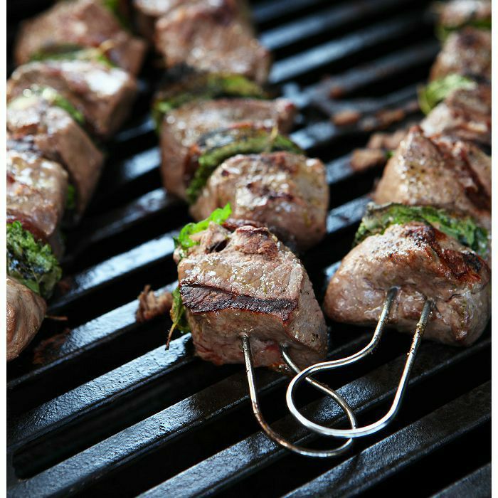 Weber dupli ražnjići dolaze u pakiranju od 8 komada. Izrađeni su od nehrđajućeg čelika. Dizajnirani su na način da se hrana probode na dva različita mjesta tako da bude fiksirana i da ne pada s ražnjića.