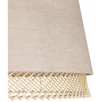 Detalji o proizvodu: Materijal kućišta:željezo Boja kućišta:crno Materijal stakla/sjenila:Tkanina, drvo Boja stakla/sjenila: Priroda, smeđa Stupanj zaštite: - Žarulja: Ne dolazi s predmetom. Vrsta utičnice (1):E27 Jamčiti: 2 godine Upute za