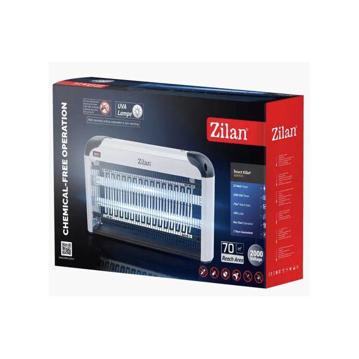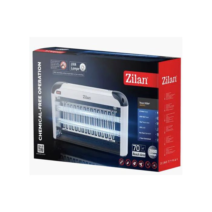 Svjetiljka Protiv Komaraca . Ova zamka radi na principu UV-A svjetlosti kojim privlači insekte osjetljive na svjetlost kao što su: muhe, komarci, moljci. Visokonaponska mrežica strujnim udarom uništava insekte. Specijalna UV-A fluo cijev je potpuno b