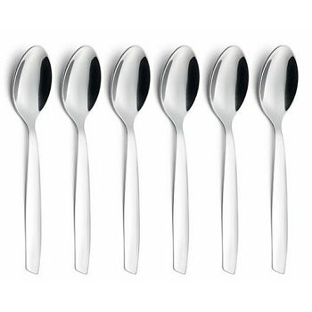 Shark je kolekcija pribora za jelo od nehrđajućeg čelika s poliranom završnom obradom. Set se sstoji od : - 6 vilice - 6 žlice - 6 noža - 6 čajne žličice Shark je kolekcija pribora za jelo s asimetričnim i zaobljenim dizajnom ručke. Ovaj mo