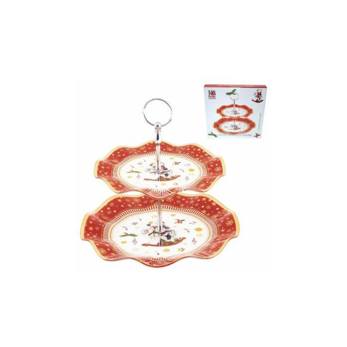 ETAŽER STAKLENI DEKORATIVNI 2 NIVOA 25,5 / 20 cm crveni,valovit rub