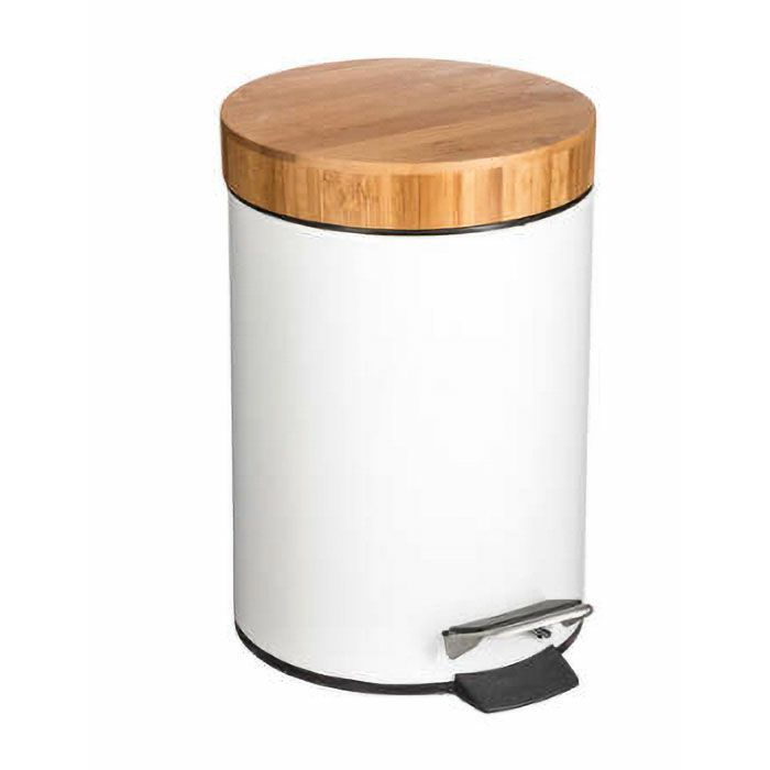 FIVE 140801 KANTA ZA SMEĆE NATUREO 3L NA PEDALU, METAL/BAMBOU, BIJELA
