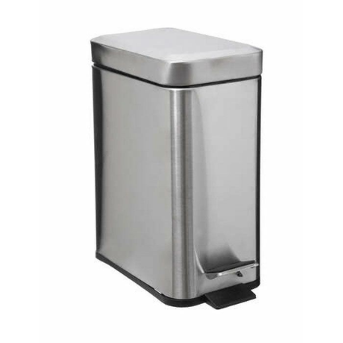 Pravokutna, srebrna kanta za smeće s pedalom koja ima ručku na stražnjoj strani što olakšava njeno pomicanje. Izrađena je od izdržljivog metala. Ima princip tihog zatvaranja, te je iznutra opremljena dodatnom kantom što olakšava njeno čišćenje. Volum