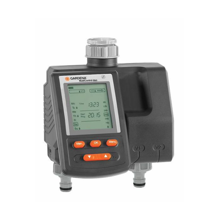S GARDENA Računalom za navodnjavanje MultiControl duo možete navodnjavati 2 različita područja u vrtu. Na primjer, travnjak iza kuće ili cvjetnih gredica ispred. Oba izlaza mogu se individualno p