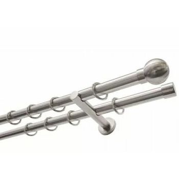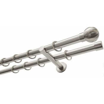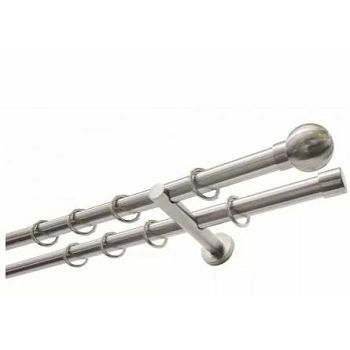 Podesiva karniša promjera 16/19 mm izrađena je od nehrđajućeg čelika podesive dužine od 190 - 340 cm. Komplet sadrži: šipku, nosač, završetke i pribor za montažu.