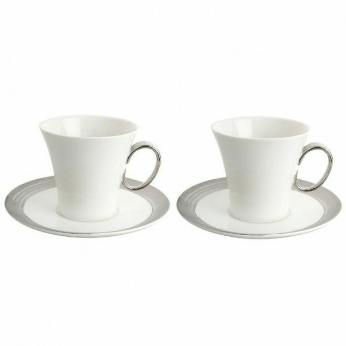 ŠALICE SET S TANJURIĆIMA RELJEF 200ml 12/1 srebreni rub i drška porculan #