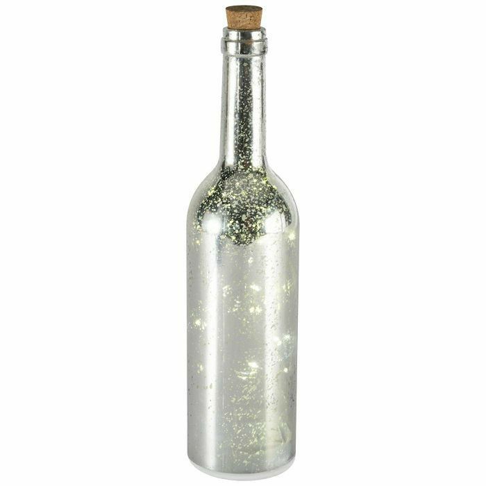 Dekorativna staklena boca, boca srebrne boje, unutarnja LED svjetlost, 8 lampica,