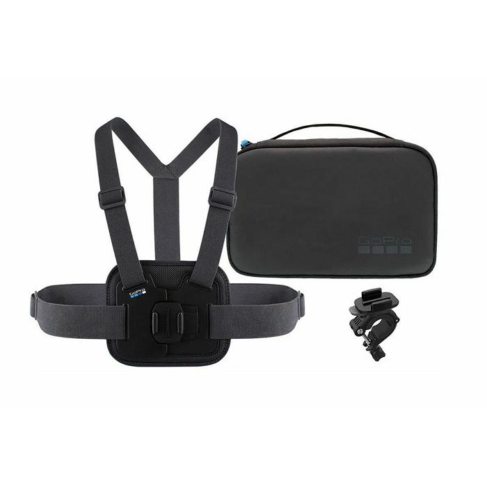 GoPro Sports Kit za snimanje nevjerojatnih snimaka dok vozite bicikl, skijate, veslate i još mnogo toga. Ovaj komplet uključuje Chesty (Performance Chest Mount) za impresivne snimke bez upotrebe ruku. Kit se isporučuje spakiran u pri