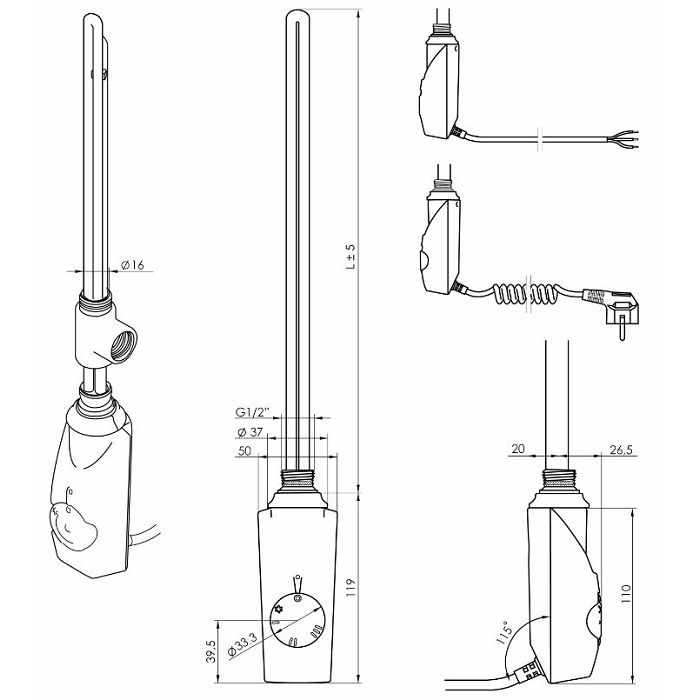 GRIJAČ EL. S TERMOSTATOM 1/2" 600 W