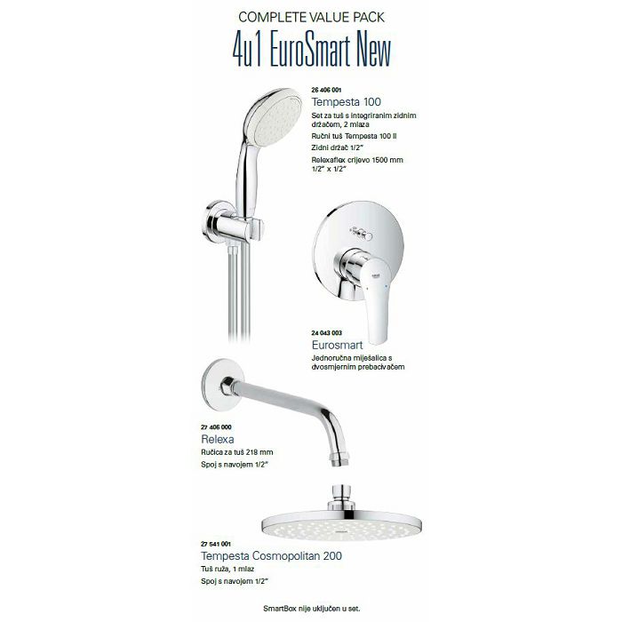 GROHE EUROSMART NEW 21-SET 4U1, PODŽ. MJEŠ. ZA KADU SA TUŠ GARN, I TUŠ RUŽOM