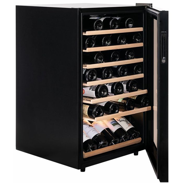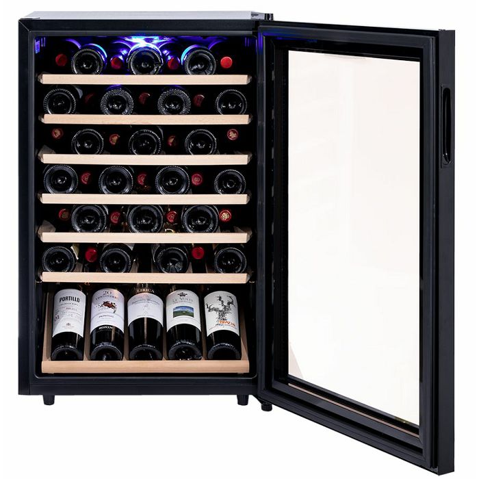 Jedna zona, model od 48 boca. Hladnjak ima udubljenu ručku na vratima, a boce se drže na čvrstim drvenim policama. Ovaj hladnjak podržava skladištenje otvorenih boca. Ova jedinica nije prikladna za ugradnju u ili ispod pulta. Ovaj model ima mehanički