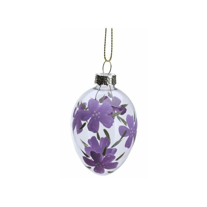 JAJE STAKLENO S DEKORACIJOM CVIJEĆA 7cm ljubičasto