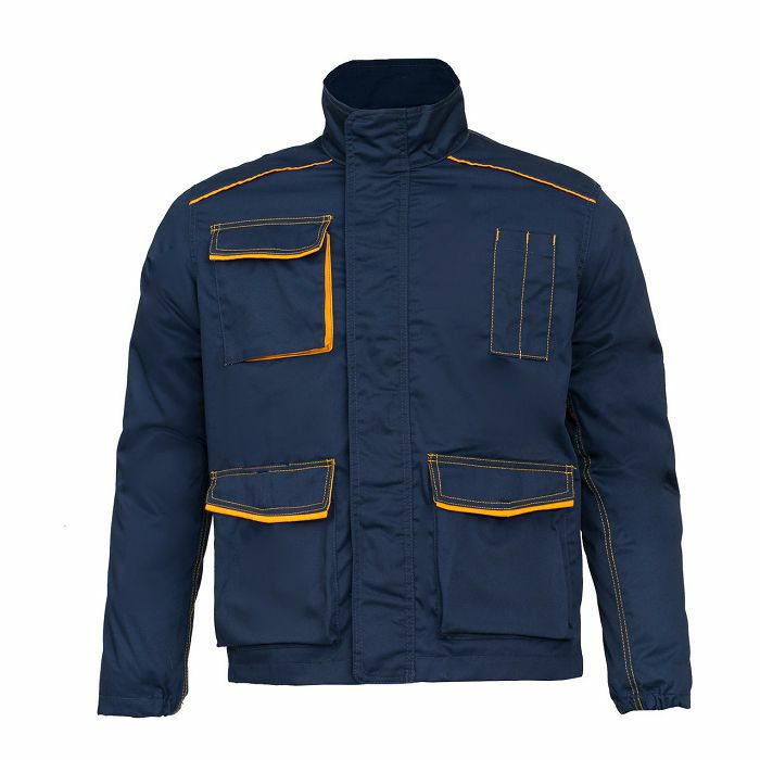 Radna jakna izrađena je od izdržljive tkanine u mješavini poliestera i pamuka. Kopča se skrivenim patent za