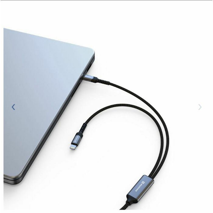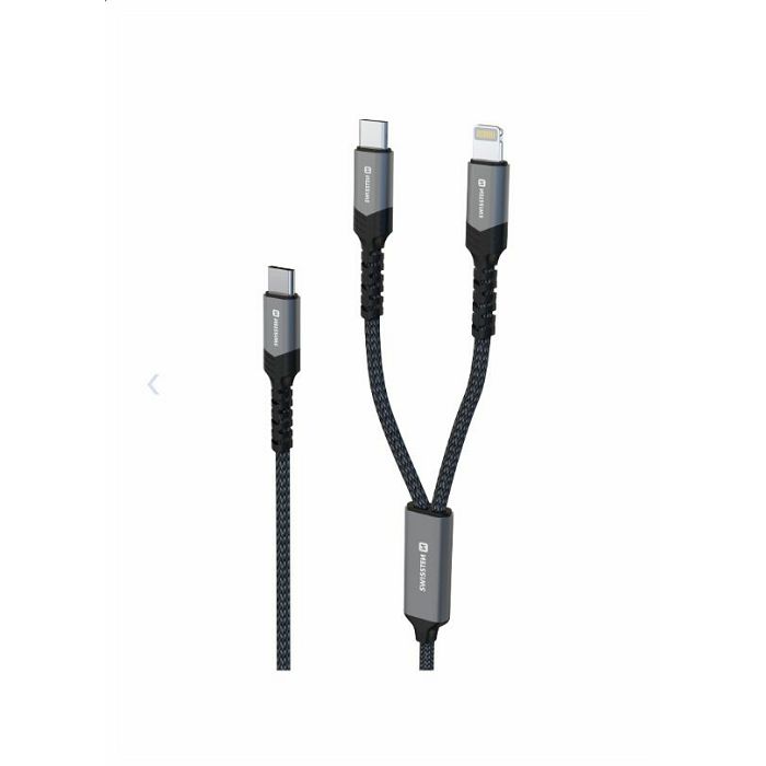 SWISSTEN 2-u-1 USB-C / USB-C + Lightning kabel 100W. Puni dva uređaja istovremeno s do 54W + 19,8W.
