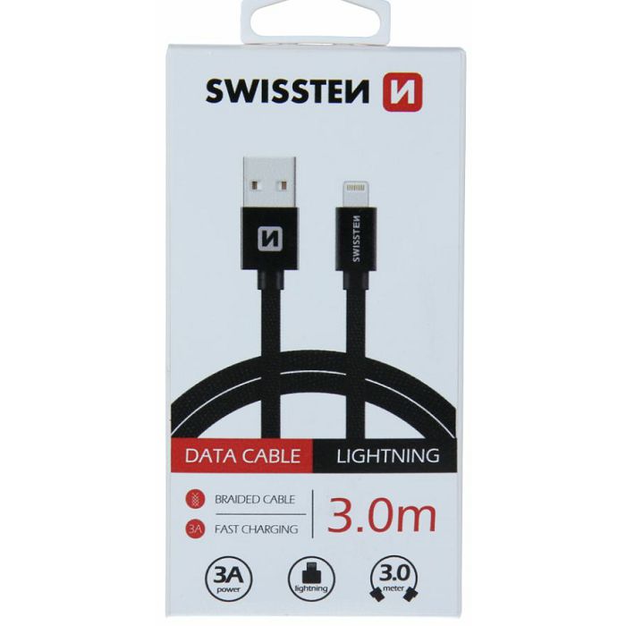 KABEL SWISSTEN USB/LIGHTNING PLATENNI 3 MET CRNI
