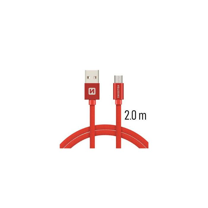 KABEL SWISSTEN USB/MICRO USB PLATNENI 3A, 2M CRVENI