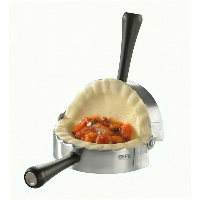 Praktični kalup za izradu svježih raviola ili tjestenine. Jednostavno je, dnom kalupa izrežite tijesto, izrezano tijesto stavite u unutrašnjost kalupa, a zatim ga napunite. Premažite rubove bjelanjkom, preklopite i gotovi ste. Zatim ga izvadite i kuh